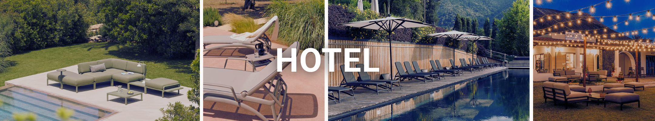 Hos Havemøbelshoppen finder du driftssikre hotel udendørsmøbler, der kombinerer komfort, design og holdbarhed. Vi fører stilfulde solsenge fra Nardi – kendt for branchens bedste kvalitet til en meget attraktiv pris og anvendt på hoteller i hele Sydeuropa. Derudover tilbyder vi elegante solvogne i teaktræ, som er perfekte til spa- og poolområder og tilfører varme, eksklusivitet og en luksuriøs stemning.